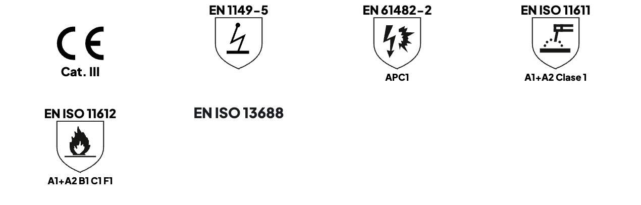 Buzo en Algodón de 270 g.Buzo ignífugo y antiestático con protección contra calor y llama, soldeo y procesos afines y los efectos térmicos del arco eléctrico. Tejido de algodón tratado con resistencia de las propiedades del tejido para 50 lavados, muy ligera y confortable. Pictogramas y normas certificadas, grabados por transferencia de calor en color plata y retrorreflectante, en un lugar altamente visible de cara a facilitar las labores de cumplimiento de la prevención de riesgos laborales en las industrias metalúrgica, petroquímica y naval.