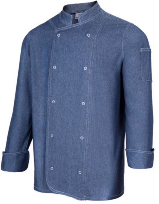 CHAQUETA DE COCINA DENIM CON AUTOMATICOS MANGA